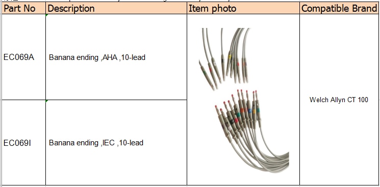 Comaptible Welch Allyn CT 100 przewody ekg, 10 odprowadzeń, podłącz kabel EKG